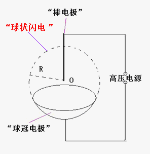 我們認為:“棒電極”在球心O對“球冠電極”放電,可以產生“球狀閃電”。 [3][4]
