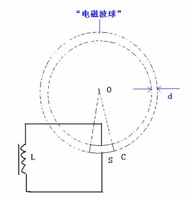 如圖7,在一個由“點(diǎn)電極”O(jiān)與“球冠電極”S組成的“球錐空間”中,如果O與S之間產(chǎn)生了足夠的“特高電壓”,那么這個“球錐空間”就可以被“雙向激擊”,依次連續(xù)發(fā)生“球冠振蕩”……、S2、……、S1、……、S,產(chǎn)生不同頻率的“電磁波球”,并且呈“嵌套球狀”分布,由外到里即由球冠S到點(diǎn)O,產(chǎn)生的“電磁波”的頻率越來越大。