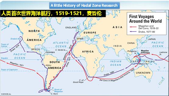 那么世界海洋最深的點在什么地方呢?我們國家有鄭和下西洋,大約是公元1300年左右,鄭和航海最遠的路線是印度洋。而麥哲倫航海的路線是全球航行,去了好幾個大洋。在1521年,麥哲倫曾用繩子梆住重塊、讓重塊在海中下沉,然后不斷放繩子的辦法測量海洋的深度。在馬里亞納海溝區域,麥哲倫的繩子沒有放到底,他認為馬里亞納海溝最深,但不知具體數字。