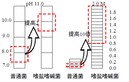 針對新型的嗜鹽嗜堿硫氧化系統,我們自行篩選了嗜鹽嗜堿極端微生物,并敲除降低單質硫產生的基因途徑,對其進行遺傳基因改造。該微生物可在較高的pH值和鹽度范圍內生長,相對普通菌群的耐受能力大大提高(圖1-4)。