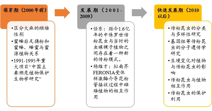 由于傳粉昆蟲的重要性以及目前所面臨的危機已經引起科學家和民眾的廣泛關注。諸多地區級、國家級乃至全球級別的傳粉研究已經取得了階段性的成果。就全球范圍來說,傳粉昆蟲的研究主要包括四個時期,分別為:1)萌芽與發展初期(18世紀初到20世紀上半葉);2)發展期(20世紀下半葉);3)快速發展期(20世紀90年代起至21世紀初);4)新快速發展期(2003年以后)。